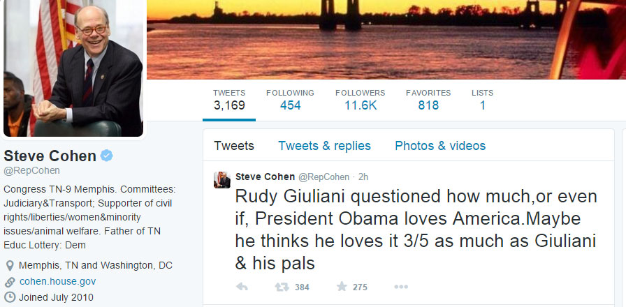 US House Rep Steve Cohen (D-TN) made the following tweet regarding Giuliani: